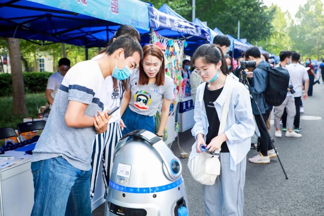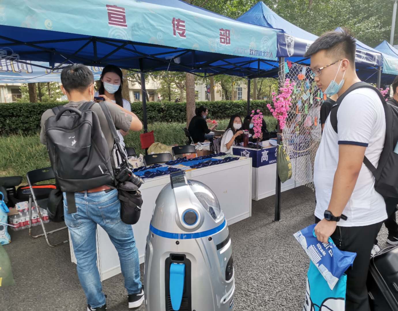 “同学你好,确认过眼神,你是北航人!祝贺你报到成功,欢迎你来到北航”。本次迎新现场有一名特殊的“工作人员”十分抢眼。它眼睛闪烁,舞动着翅膀,造型十分惹人喜爱,吸引无数师生驻足对话。它就是机器人“小胖”。识别新生身份后,“小胖”会播报姓名并随机触发若干种词条进行互动:“终于等到你,今天是你成为北航人的第一天,欢迎回家”、“北航有学院路校区和沙河校区,听说往返两校区要做?;?,你买机票了吗?”等。不仅为迎新现场增加了科技感,更增添了一丝趣意。该机器人由进化者机器人公司提供,研发团队主要来自于北航机器人研究所。