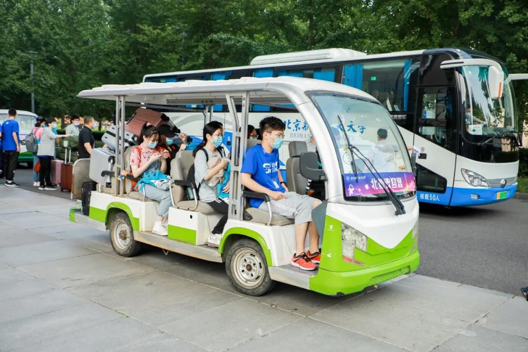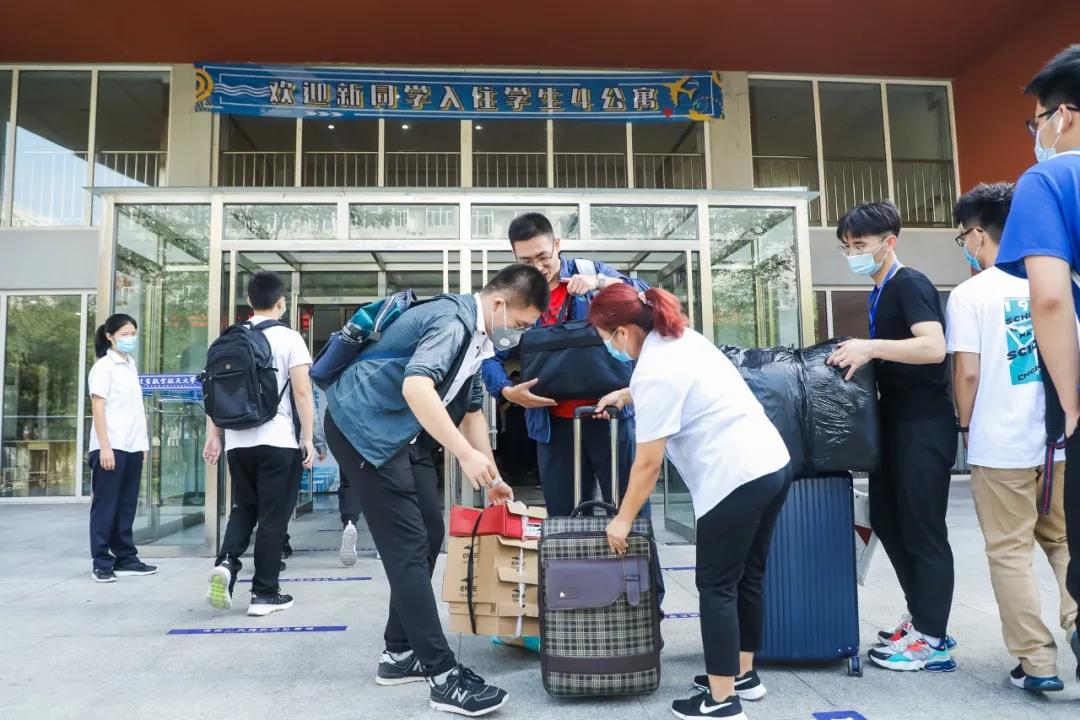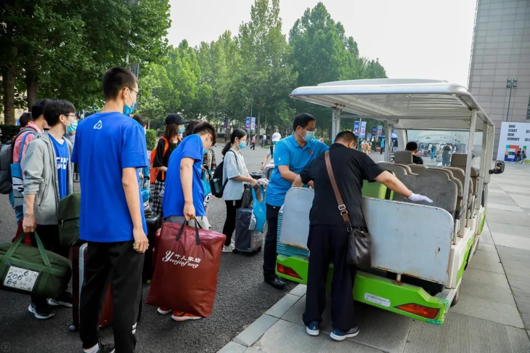 在首都机场、大兴机场、北京站、北京南站、北京西站、北京清河站、沙河地铁站等,学校大巴已做好准备,直接接送新生至两校区迎新报到点。在报道区域,学?;拱才帕税诙沙?,专车托运新生行李至学生宿舍。