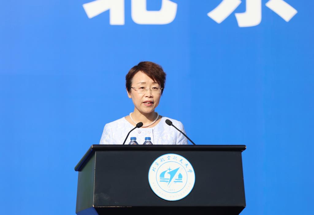 徐惠彬代表北航全体师生对来自全国各地的10572名新同学表示热烈的欢迎和衷心的祝贺。面对眼前对大学生活充满兴奋与期待的“新北航人”,他与大家深情回顾了北航六十八年的办学历程中,一代代锐意进取的北航青年艰苦创业、振兴国防,为国铸剑、实干兴邦,民族复兴、空天报国,始终不变的是红色基因的传承,是爱国奉献的初心,是空天报国的使命。