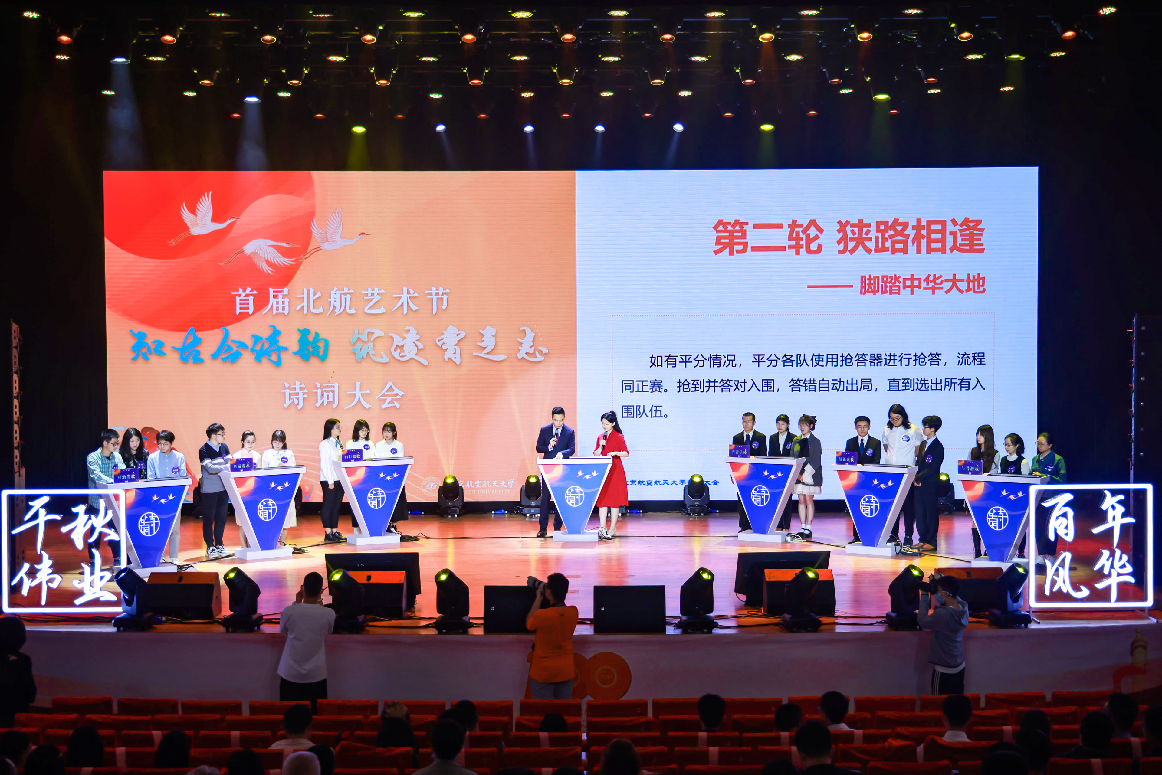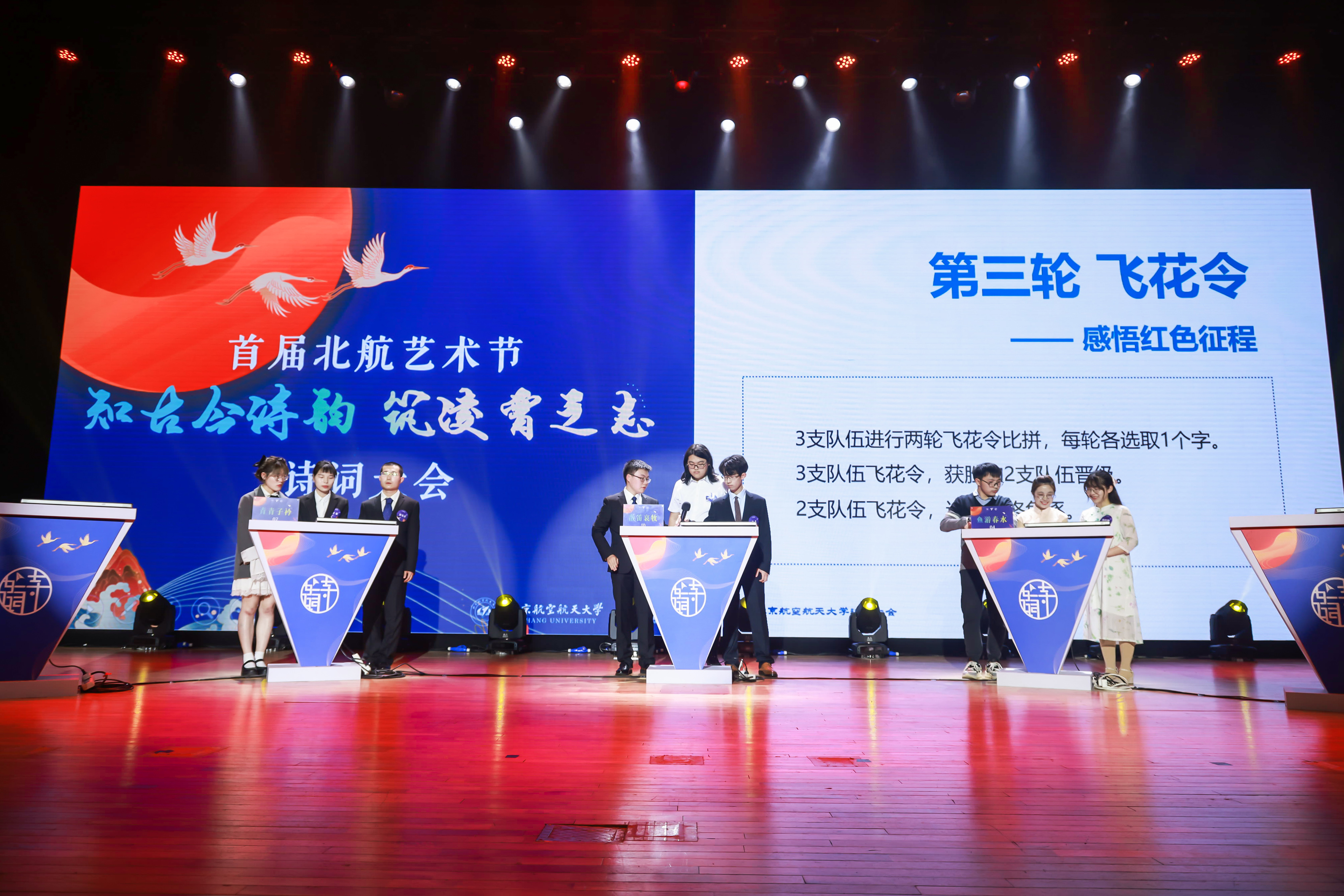 北航新闻网5月14日电(记者 王晴/文 邸白鹭 靳辉 陈家珩 秦瑜航/摄影)5月14日下午,北京航空航天大学举办首届北航艺术节之“知古今诗韵,筑凌霄之志”诗词大会决赛,旨在庆祝中国共产党成立100周年,深入开展党史学习教育,弘扬中华优秀传统文化,传承空天报国精神。中国工程院院士陈懋章,校党委副书记程波,各部处及各学院、书院负责人与400余名学生共同参加本次活动?;疃尚?、学生处、研究生院、北航学院主办,人文社会科学学院、飞行学院、物理学院、软件学院、新媒体艺术与设计学院、知行书院承办。
