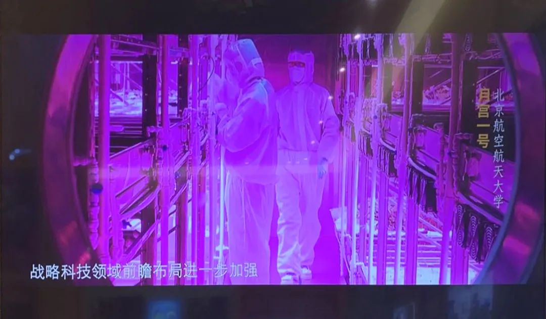 驻足在这一展区,同学们还在视频画面中发现了北航“月宫一号”的身影。“月宫一号”是北航校园里的空间基地生命保障人工闭合生态系统地基综合实验装置,曾开展世界上时间最长、闭合度最高的生物再生生命保障系统实验,刷新了人类密闭生存的世界纪录??醋攀悠抵小霸鹿缓拧敝驹刚呙敲β档纳碛?,人文社会科学学院2019级本科生丁林枫说:“新时代是新的一代追梦人的时代,广大青年要坚决响应党的号召,怀揣爱国之情,秉承老一辈奋斗和实干精神,去拼搏奋斗,去开拓崭新未来,方能不负时代,不负韶华!”