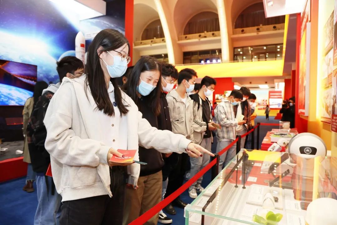 电子学院2021级硕士研究生杨鹏瑜说:“神舟载人飞船返回舱、“奇迹号”帆船模型、“方寸之间”陈列墙内的芯片??榈纫幌盗姓蛊啡梦腋惺艿秸馐堑澈凸曳⒄怪屑谎俺!⒓黄椒驳氖?。作为一名北航学生,我一定更加努力地学好知识,做好科研,立志空天报国,讲好中国故事,向世界展现可信、可爱、可敬的中国形象!”