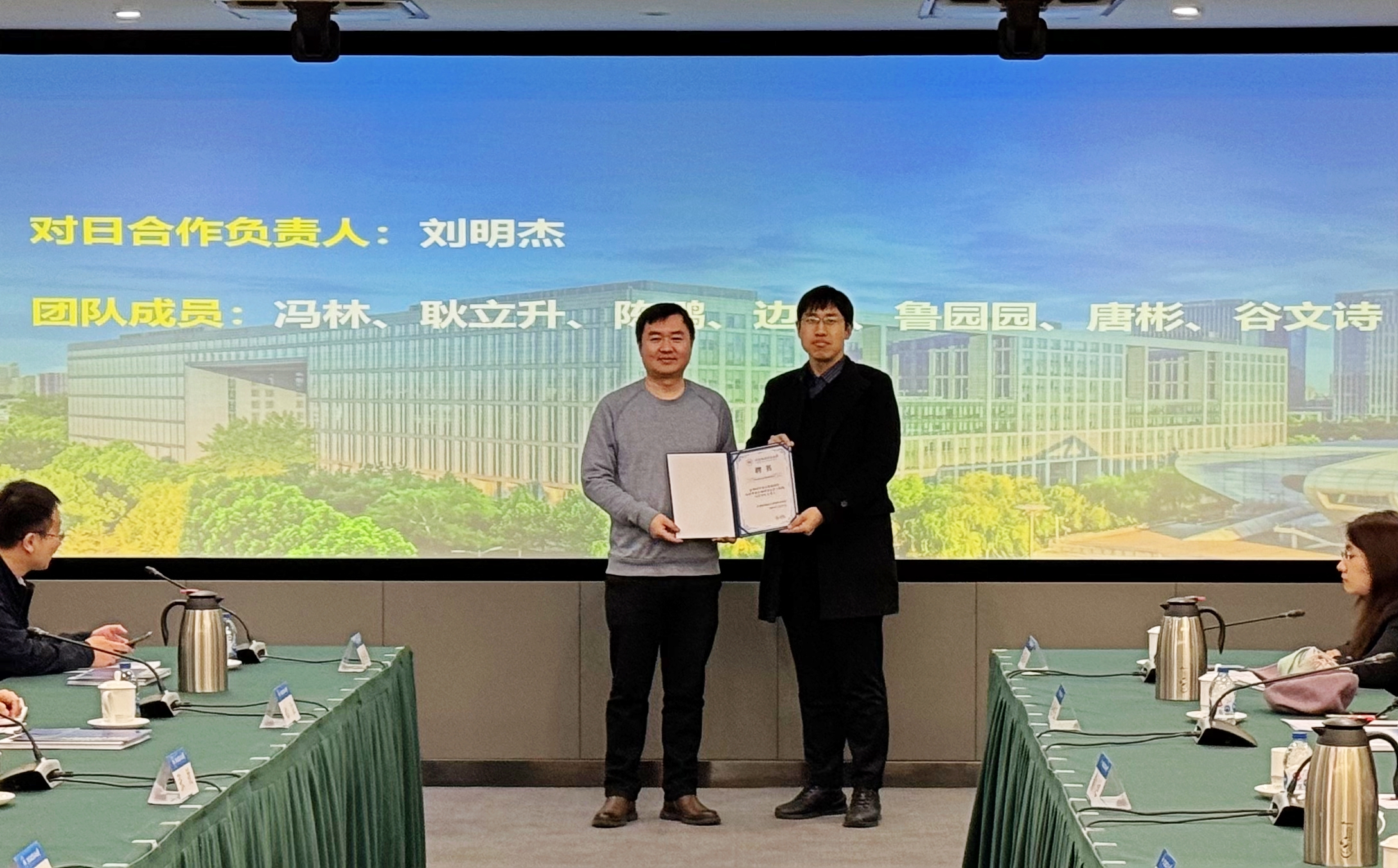 启动仪式上,赵巍胜向对法合作负责人、集成电路学院常务副院长张悦,对日合作负责人、化学学院院长刘明杰颁发聘书。