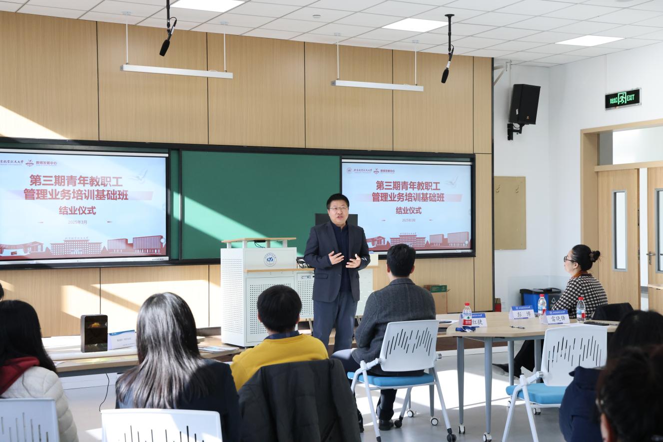 为深入学习贯彻党的二十大和二十届二中、三中全会精神,落实立德树人根本任务,着力提升教育科技人才融合互促水平,结合学校2025年年度工作要点,机关党委、教师发展中心联合组织第三期青年教职工管理业务培训基础班。培训旨在进一步提升机关管理服务水平,提高我校管理服务系列青年教职工的管理专业技能和数智素养能力,更好地服务学校事业发展。本期培训班历时三周,课程共19学时,来自京、杭两地党政机关、服务支撑机构、教学科研单位的近80位学员参训,山西省中阳县教育系统教师、直属机关单位相关工作人员与我校教职工共上一堂课。