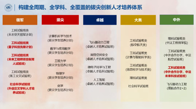 2023年,北航入选首批高校学科交叉中心试点建设任务,构建学科交叉融合发展的新机制,解决制约学科交叉融合关键问题,以项目方式推进高层次复合型人才培养。2025年,北航作为全国首批6所高校之一,获批增设“低空技术与工程”专业?!?025年国务院政府工作报告》中提及的商业航天、低空经济、深海科技、生物制造、量子科技、具身智能、6G等7个新兴、未来产业方向,都是北航的优势学科,均已布局相关招生专业。