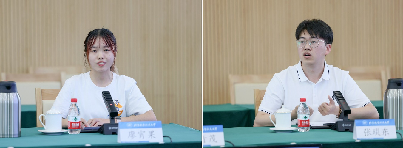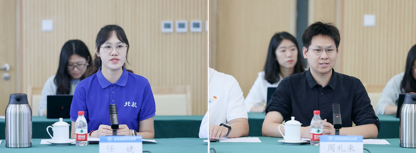 座谈会上,同学们动情讲述求学期间的点滴成长,分享交流在北航吸取的智慧和力量,并表达了对母校的感激与不舍。数学科学学院姚青茂分享自己在“数智交叉”领域的科创经历,表示将继续深入探索人工智能与数学的交叉研究。交通科学与工程学院迪拉然·那斯江讲述参与“畅叙疆来”实践队以专业赋能乡村振兴、促进民族团结的难忘经历,表示将努力把实践所学转化为推动个人成长的坚实力量。飞行学院鲁翰宸分享了成长为民航飞行员的奋斗故事,表示将努力为祖国民航事业贡献青春力量。国际学院王浩回顾了作为首批萨尔瓦多留学生,从语言零基础到顺利毕业并取得优异成绩的北航故事,表示将继续为筑牢中萨友谊贡献力量。