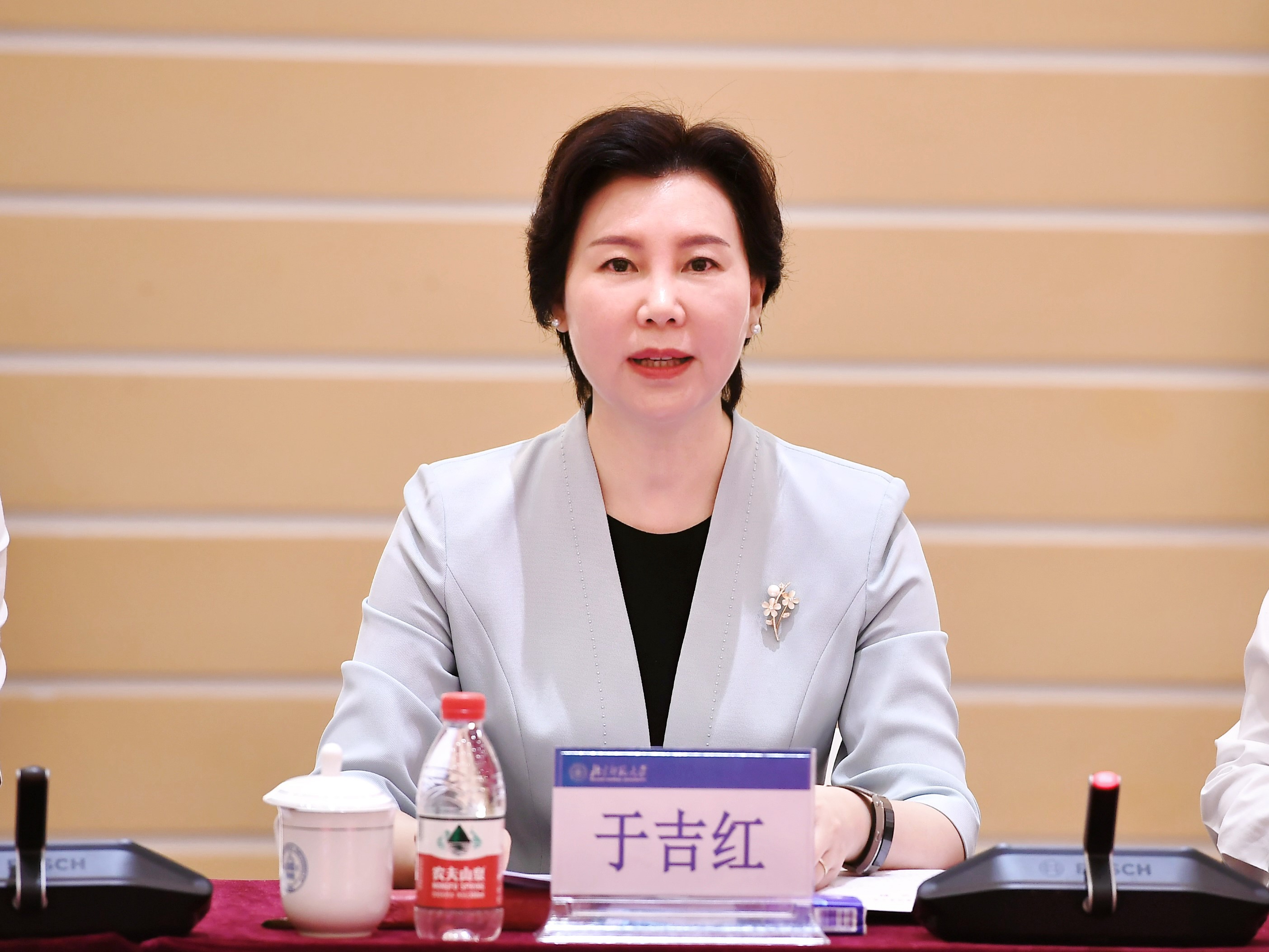 于吉红向北京市、昌平区及各兄弟高校同仁的到来表示了热烈的欢迎。她强调,北京师范大学高度重视在昌办学情况,从深化昌平校园建设、构建产业高地、推进多方交流共建三个方面,积极服务沙河高教园区建设发展。她表示,北京师范大学将继续发挥优势特色,聚焦昌平区和高教园区发展需要,积极协同兄弟高校,不断完善校校合作、校企合作、校区合作等多方共建、开放办学的新模式,在人才培养、科教融合、成果转化等领域持续发力,着力打造好在昌高校建设的共同体,助力沙河高教园区高质量建设,为推进教育科技人才一体发展、服务强国建设贡献更大力量。
