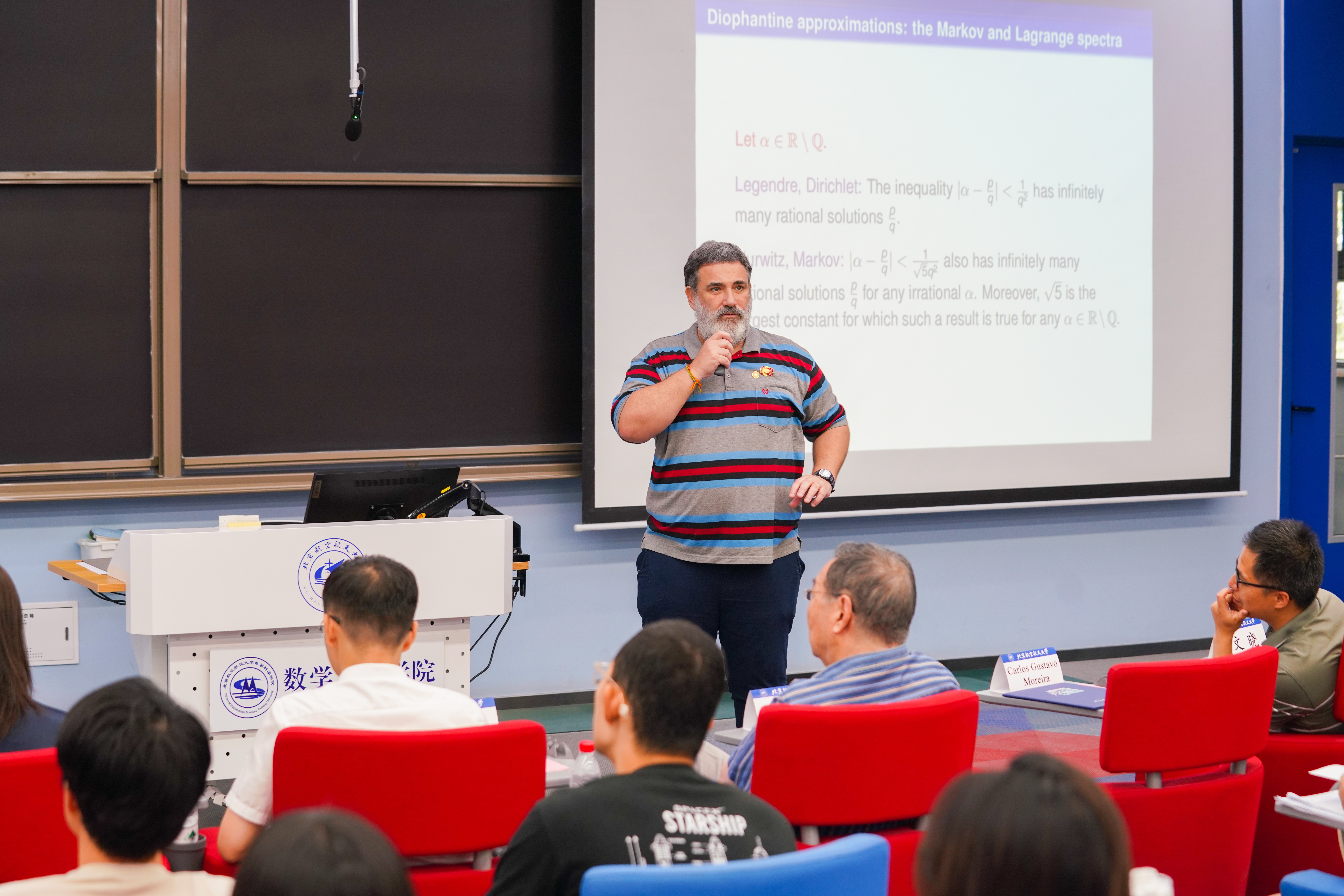 Moreira院士探讨了丢番图逼近理论中的经典对象——Markov谱(M)和Lagrange谱(L)的分形几何性质,介绍了他与合作者在两类谱的集合差(M\L)在分形维度上的最新进展。这些成果与已有符号动力学、连分数理论及正则康托集算术和的分形几何研究建立了密切联系,在动力系统的同宿分岔研究中具有重要价值。