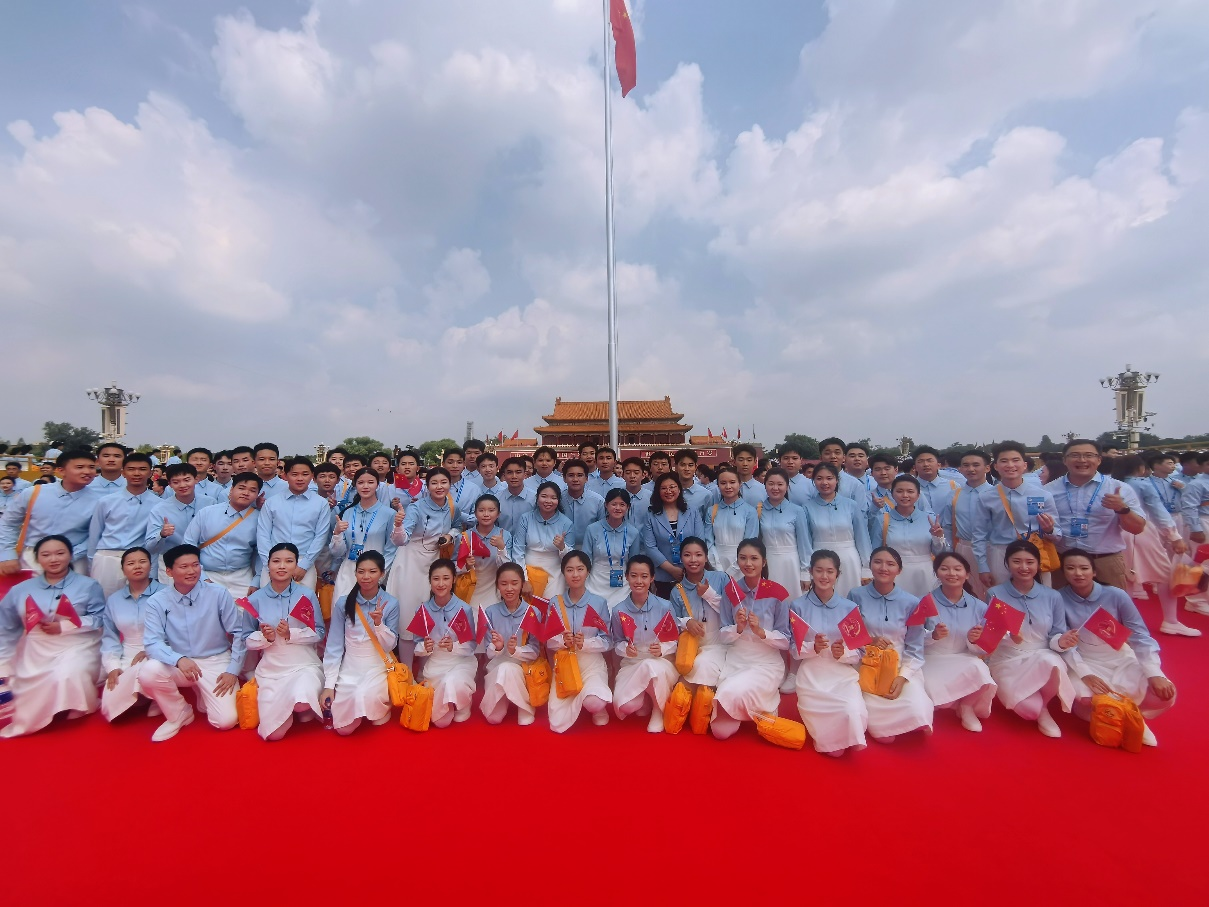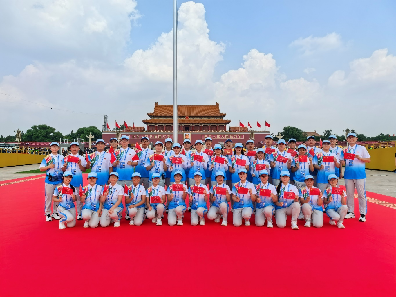 现场特别将师生定妆照拼成“80”和爱心图案,既纪念抗战胜利80周年,也象征全体师生团结一心、奉献付出的精神。这些影像记录下了师生们服务国家盛事的光荣时刻。