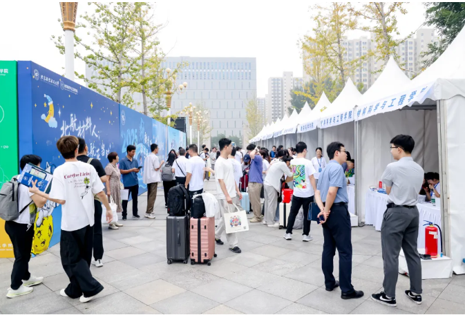 北航新闻网9月5日电(记者 任和 通讯员 王婧仪/文 记者 邸白鹭/摄影)金秋时节,北京航空航天大学迎来8751名2025级研究生新生。今年,北航迎新工作在北京、杭州两地三校园开展,迎新现场分别设置在学院路校区求是广场、沙河校区世纪之声广场、杭州国际校园师生服务大厅。