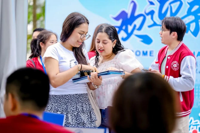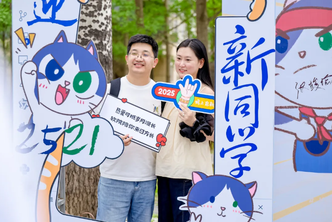 各学院结合自身特色,精心设计了丰富多样的迎新活动。新生们和学院吉祥物一起, 在具有学院特色的展板前签字留影,定格灿烂的笑容,领取特色的迎新礼物。