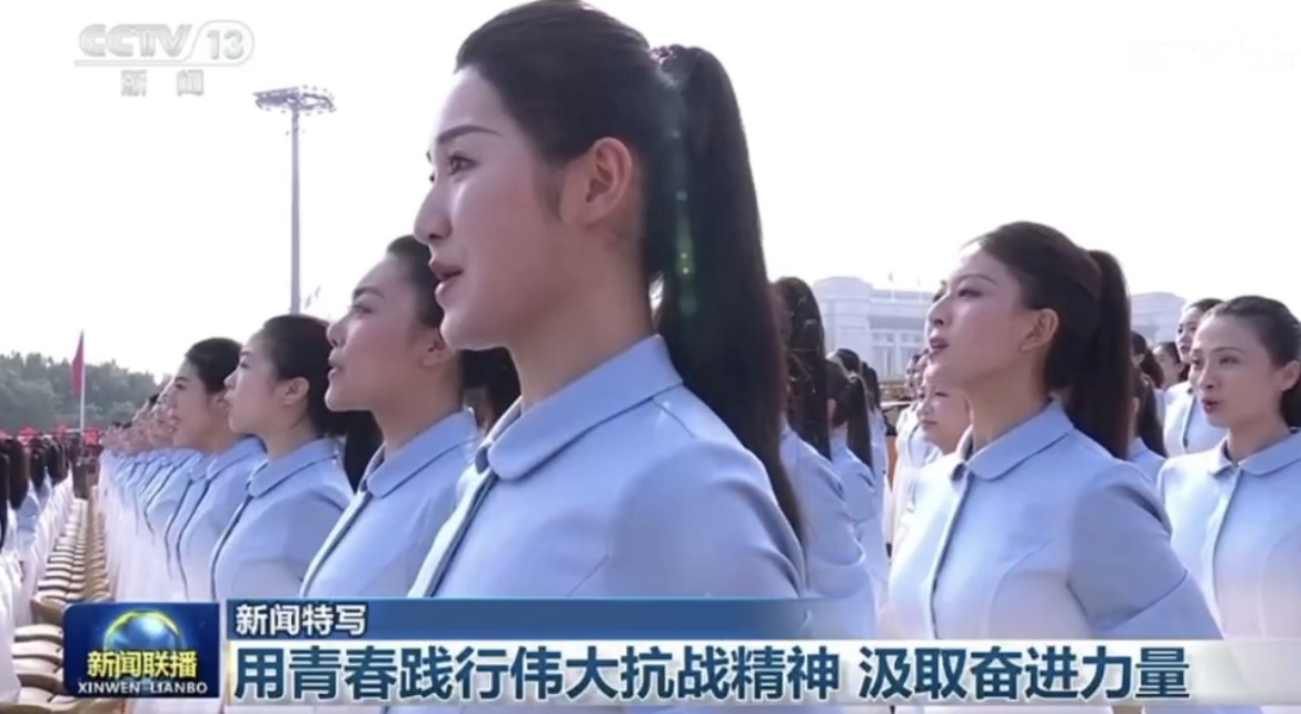【主持人】在纪念中国人民抗日战争暨世界反法西斯战争胜利80周年大会上,来自北京40所高校的3000名学生组成的合唱团,用4首动人心弦的歌曲为大会暖场,感悟伟大抗战精神、汲取奋进力量。