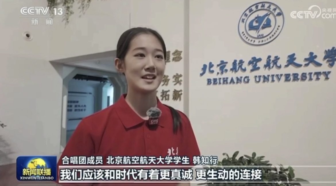 【同期】合唱团成员 北京航空航天大学学生 韩知行:我们应该和时代有着更真诚、更生动的连接,面对盛世,我们不仅要与有荣焉,我们更要匹夫有责。