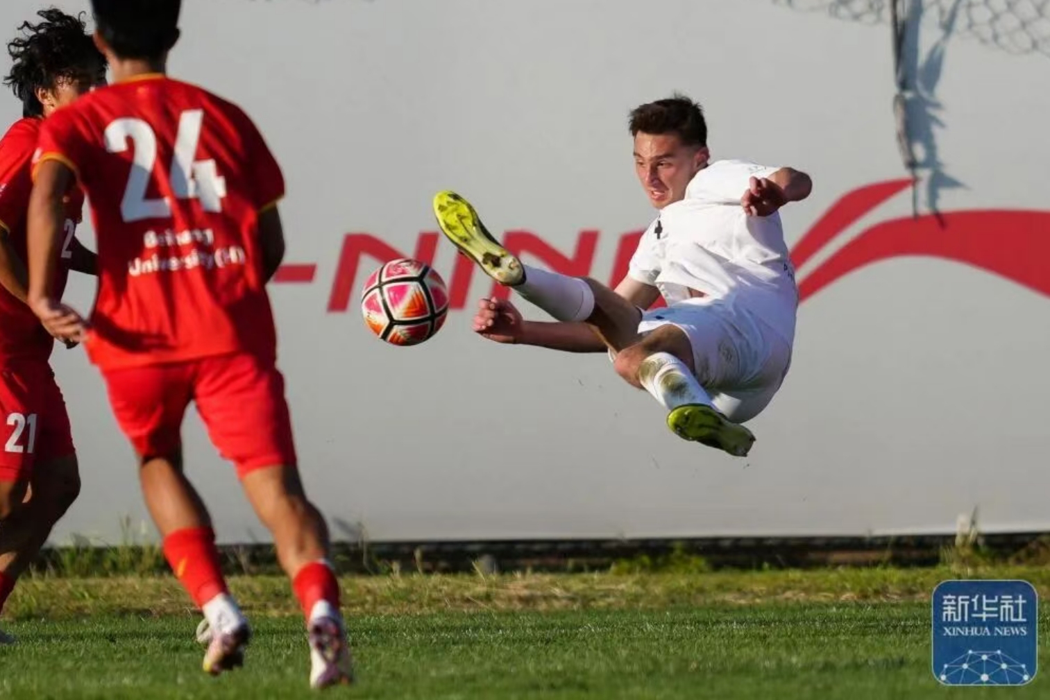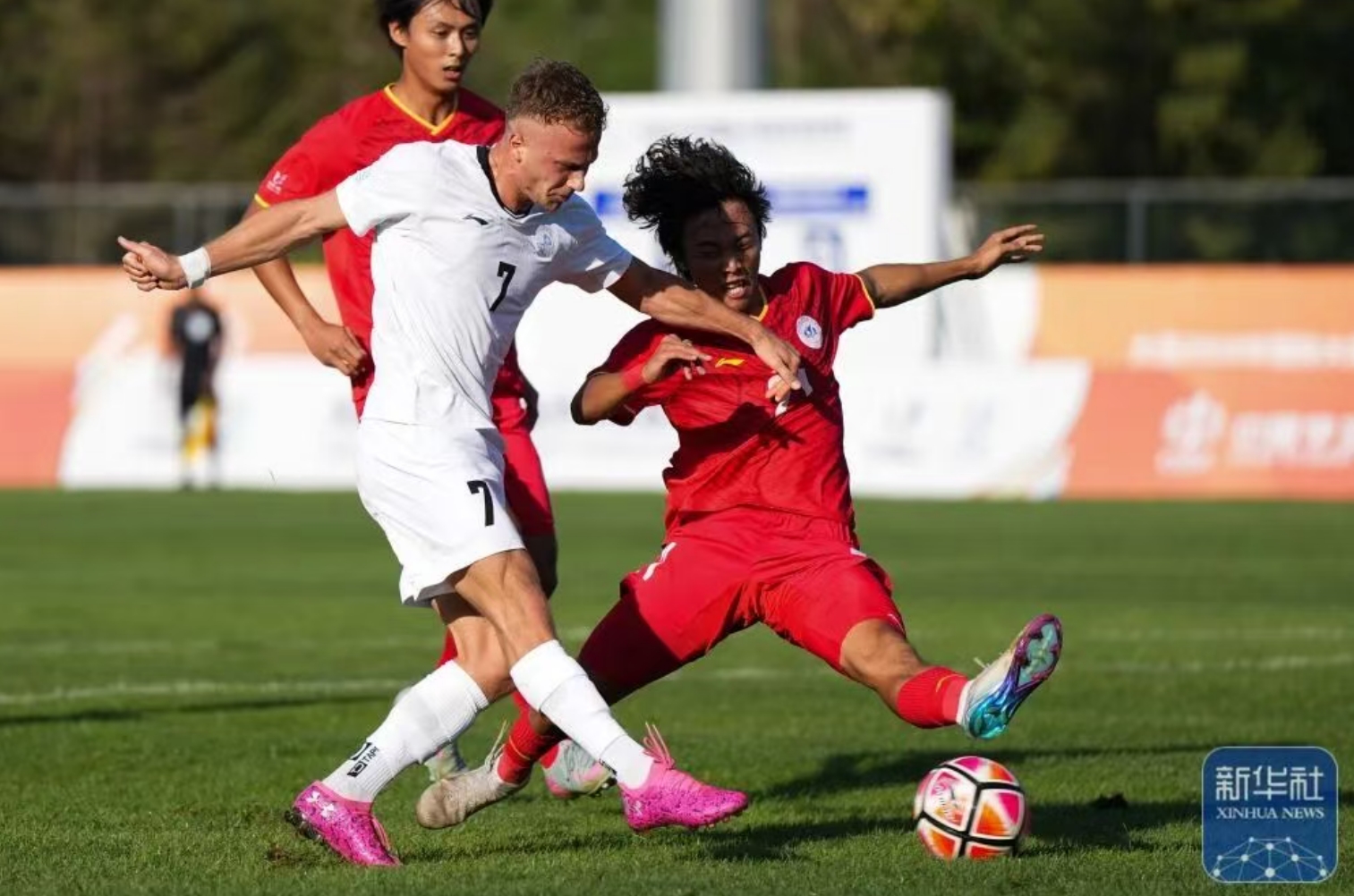 9月18日,2025年国际大体联足球世界杯男子A组小组赛在大连体育中心综合场举行,北京航空航天大学男足1比0战胜智利天主教大学男足。