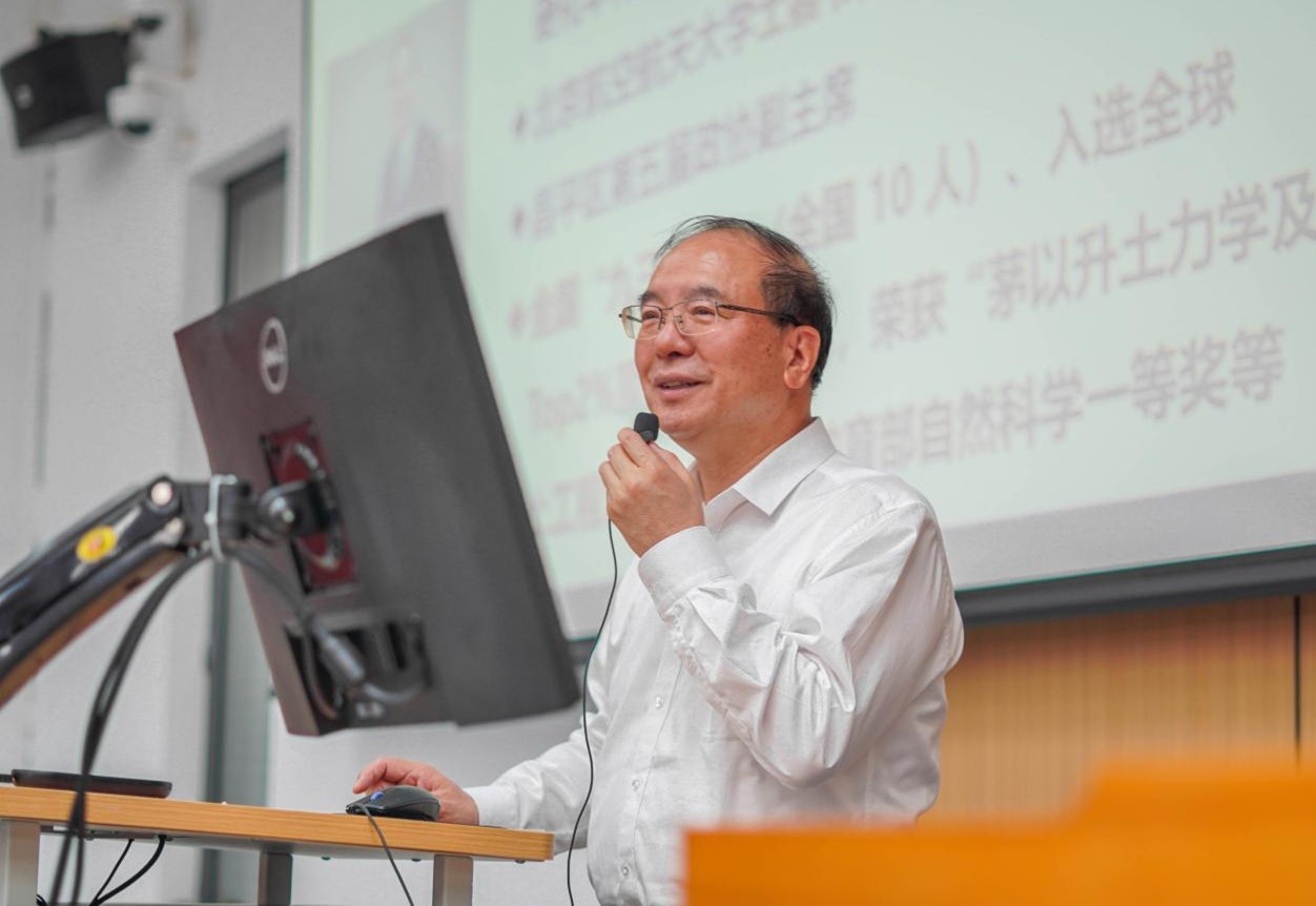 围绕“面向未来竞争,如何提升个人核心素养”这一关键问题,姚仰平分享了三组“成功密码”:“胸怀、格局、目标”“吃苦、耐烦、霸蛮”“创新、创新、再创新”。他结合自身30年科研经历,讲述了从深耕本构理论基础研究,到攻克“锅盖效应” 技术难题并应用于机场智能建造等国家重大需求,再到牵头建设中国云图书馆的实践故事。生动的分享让在场新生听得入神,纷纷记录下触动自己的“创新箴言”。