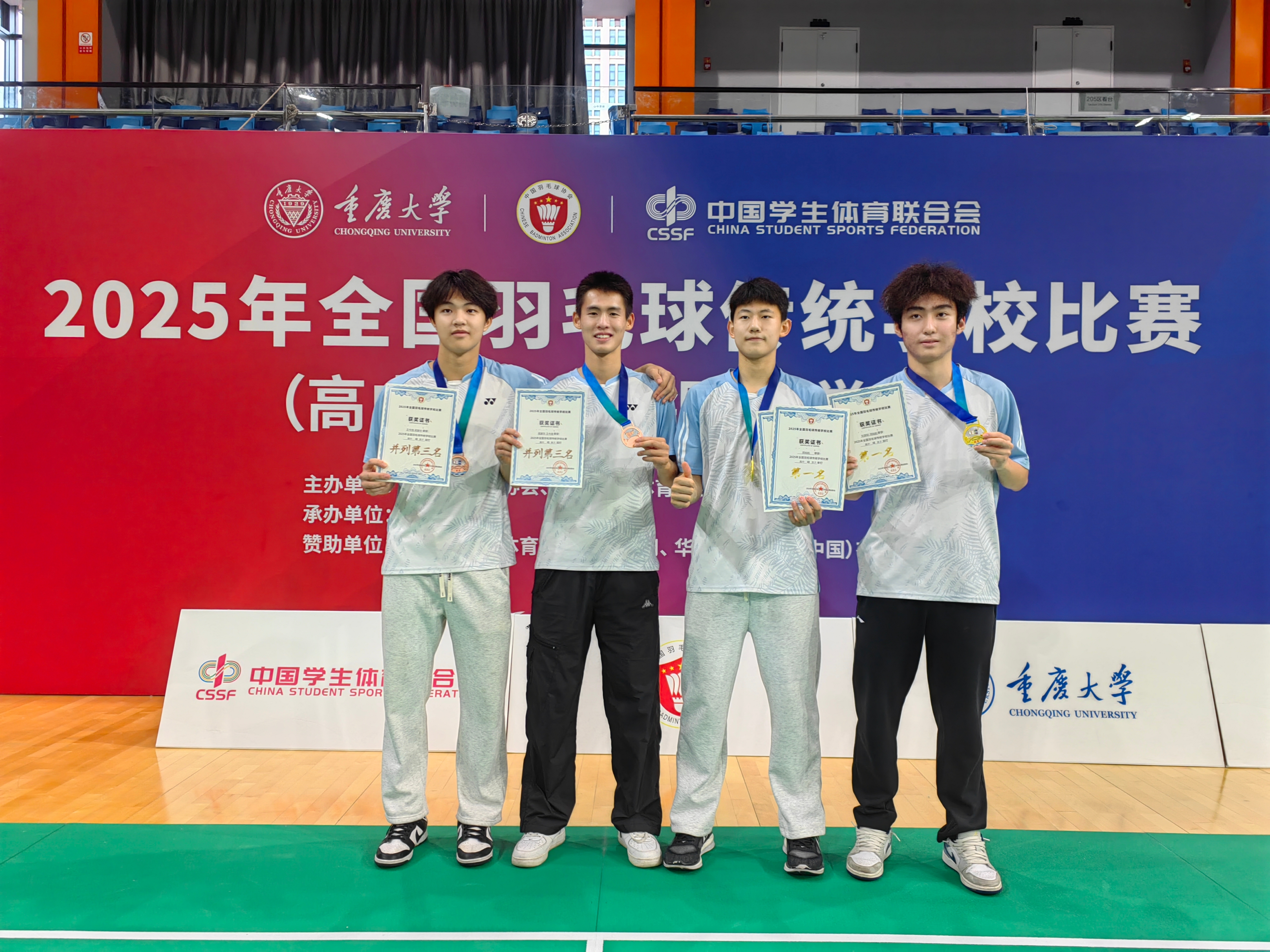 此次比赛由中国羽毛球协会、中国学生体育联合会主办,北航实验学校校队共15名队员参赛。在本次赛事中,北航实验学校男团一路披荆斩棘,展现出非凡的实力与团队协作的默契。小组赛阶段,北航实验学校均以3:0的大比分战胜两组对手,顺利从小组赛突围。进入淘汰赛,男团更是势不可挡。经过激烈角逐,最终以2:1的比分获胜,成功晋级决赛。决赛舞台上,凭借出色的发挥,北航实验学校以2:0的比分战胜对手,成功斩获高中组男团冠军。