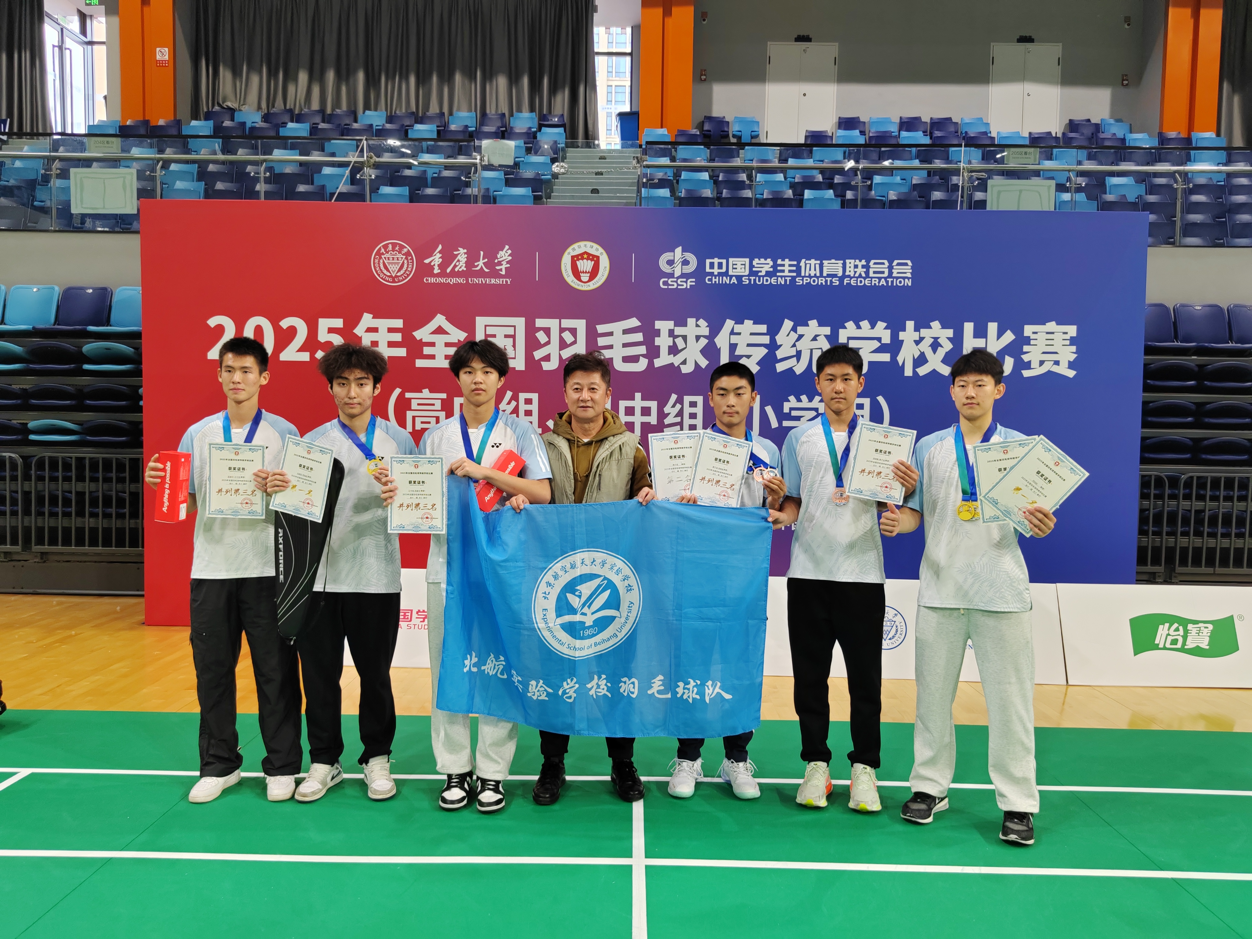 北航新闻网11月3日电(通讯员 戴一捷)10月25日至10月31日,全国羽毛球传统学校比赛在重庆火热开赛,北航实验学校羽毛球队再次取得历史性突破,继全国中学生羽毛球锦标赛男团冠军之后再次登顶,获得男团、男双、男单三项冠军。在高中组的比赛中,梁家华、周裕航、王今浩、刘紫阳、孙健源组成的男团获得冠军,周裕航获得男单冠军,周裕航&刘紫阳获得男双冠军;梁家华&王今浩获得男双季军;刘子琪、袁梦、杨星宇、王美淇、胡睿琳组成的女团获得第五名,刘子琪&袁梦获得女双第五名。在初中组的比赛中,燕子辰获得男单亚军;燕子辰&梁晓枫获得男双季军;蒯灏辰获得男单第五名。