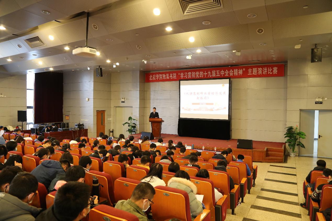 北航新闻网12月14日电(通讯员 任豪/文 丹增朗达/摄影)为深入学习贯彻党的十九届五中全会精神,落实学校立德树人根本任务,广泛在师生中掀起学习全会精神的热潮,12月9日下午,致真书院在沙河校区举办“学习贯彻党的十九届五中全会精神”主题演讲比赛,致真书院负责人、执行团队以及书院全体学生共计400余人参加。