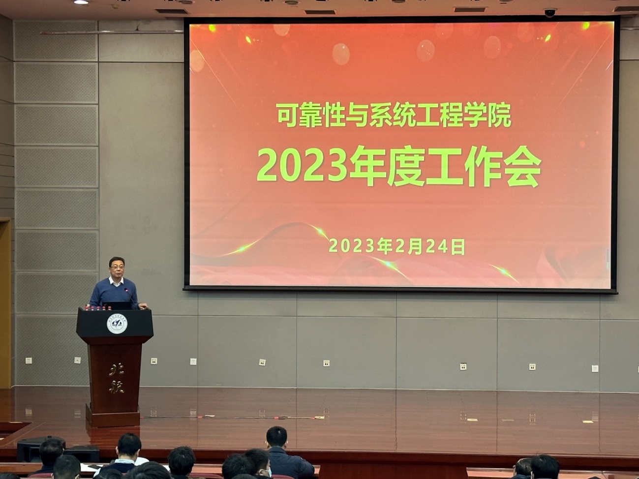 可靠性与系统工程学院院长林京传达了学校2023年度工作会议精神,详细介绍了学校2023年工作要点的总体要求和8大方面、31项要点工作。他指出,学校年度工作要点为学院的工作开展指明了方向,全体教职工要凝聚共识、开拓创新,为推动学院改革发展做出积极贡献。