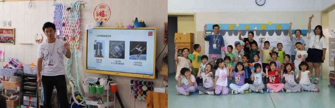 活动伊始,北航幼儿园第二教职工党支部书记刁旭、未来空天学生党支部书记宫凡分别介绍了幼儿园和党支部的基本情况,提醒学生党员活动中的注意事项。在幼儿园的大力支持下,学生党员与各班老师合作,根据儿童年龄层次,在大、中班(混班)和小、托班分别开展知识科普和读绘本活动。