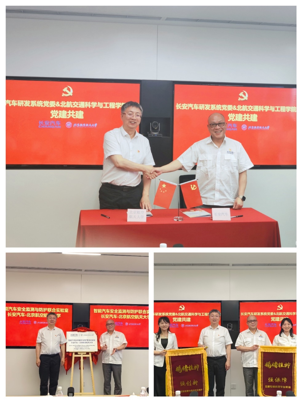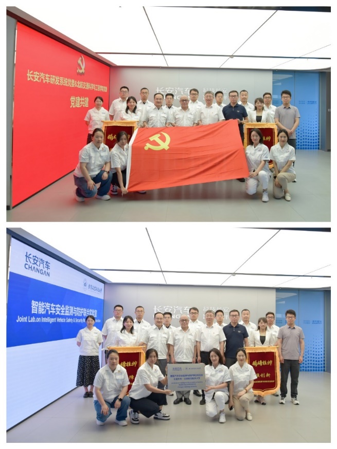双方签署党建共建协议,并举行智能汽车安全监测与防护联合实验室揭牌仪式。面向未来,双方将以党建为引领,依托联合实验室平台进一步深化产学研合作,推动智能汽车领域的技术创新与成果转化。杨世春、长安汽车研发系统党委书记詹樟松还共同为“揭榜挂帅”党员授旗。