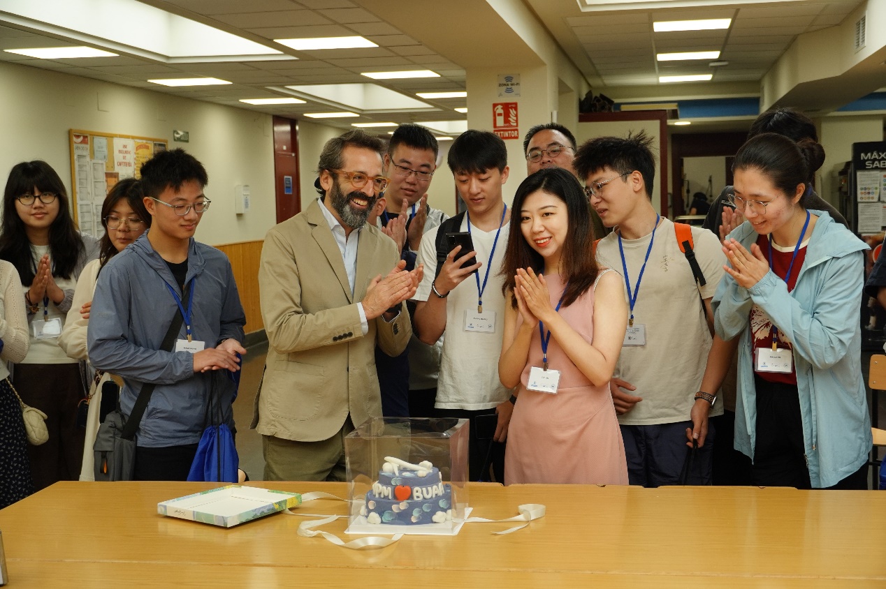 课程期间,马德里理工大学航空航天工程高等技术学院举行了欢迎午宴,Gustavo Alonso院长回顾了马德里理工大学与北京航空航天大学的深厚友谊,并表示,期待此次暑期学期成为增进双方合作和知识共享的桥梁。双方带队老师共同给大家分享了代表双方友谊与合作的蛋糕。
