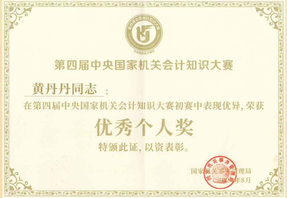 北航新闻网9月25日电(通讯员 任璇)近日,计划财务部黄丹丹同志在国家机关事务管理局、国务院国资委、金融监管总局、教育部联合举办的第四届中央国家机关会计知识大赛表现突出,荣获“优秀个人奖”。该比赛以“会聚英才 计往开来”为主题,吸引了来自全国51家中央国家机关、78家中央企业、18家中央金融企业以及40家中央高校的积极参与。我校组建了由经管学院师生和计划财务部年轻骨干共同组成的参赛团队。