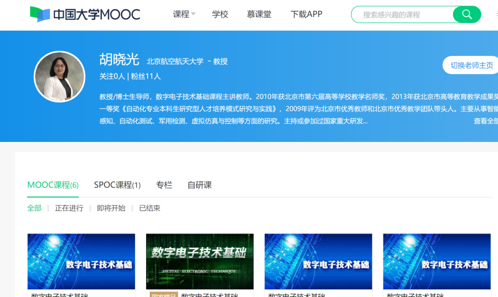 2018年建设了线上教学资源,胡晓光教授主讲的MOOC在北航上线,2020 年在中国大学 MOOC 课程上线。