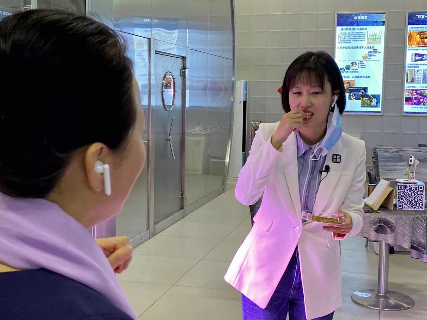 将黄粉虫引入舱内,是“月宫一号”的创新成果之一。在综合舱昆虫间,以秸秆培养的黄粉虫,通过生物转化方式可以为人提供动物蛋白。志愿者分享了两道黄粉虫做法,一为干烘,二为磨粉混入面食蒸制。