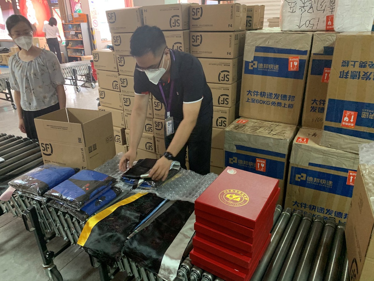 中国日报6月28日北京电(记者 赵磊)这几天,北航2020届毕业生的朋友圈里悄悄刮起了一阵“惊喜”风暴:“爱祖国,爱航空,爱航天,爱北航,这满满的仪式感啊!”“一大波来自我航的毕业礼物正在袭来”“终于我也拥有了定制版毕业礼物”…… 归校之路暂阻,但心的距离更近,2020,在这个最特别的毕业季,北航将毕业礼物通过邮寄的方式,跋山涉水送到每一名毕业生手中。
