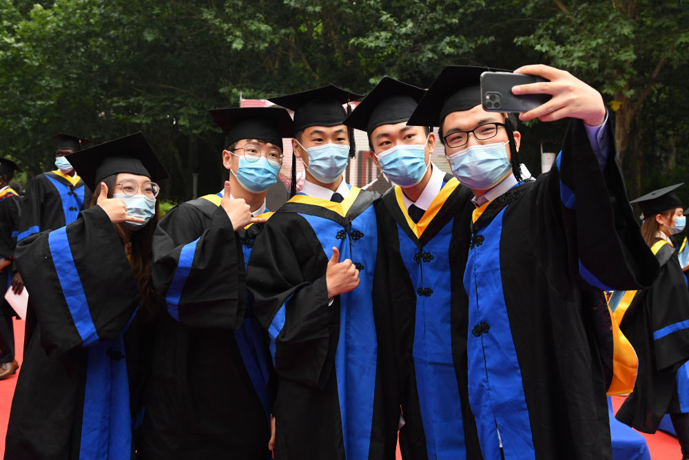 当日,北京航空航天大学举行2020届本科生毕业典礼。由于疫情防控需要,今年的典礼在北京航空航天大学主楼广场举行,仅少量在校本科毕业生现场参加,更多本科毕业生通过线上直播参与毕业典礼。(新华社记者 任超 摄)