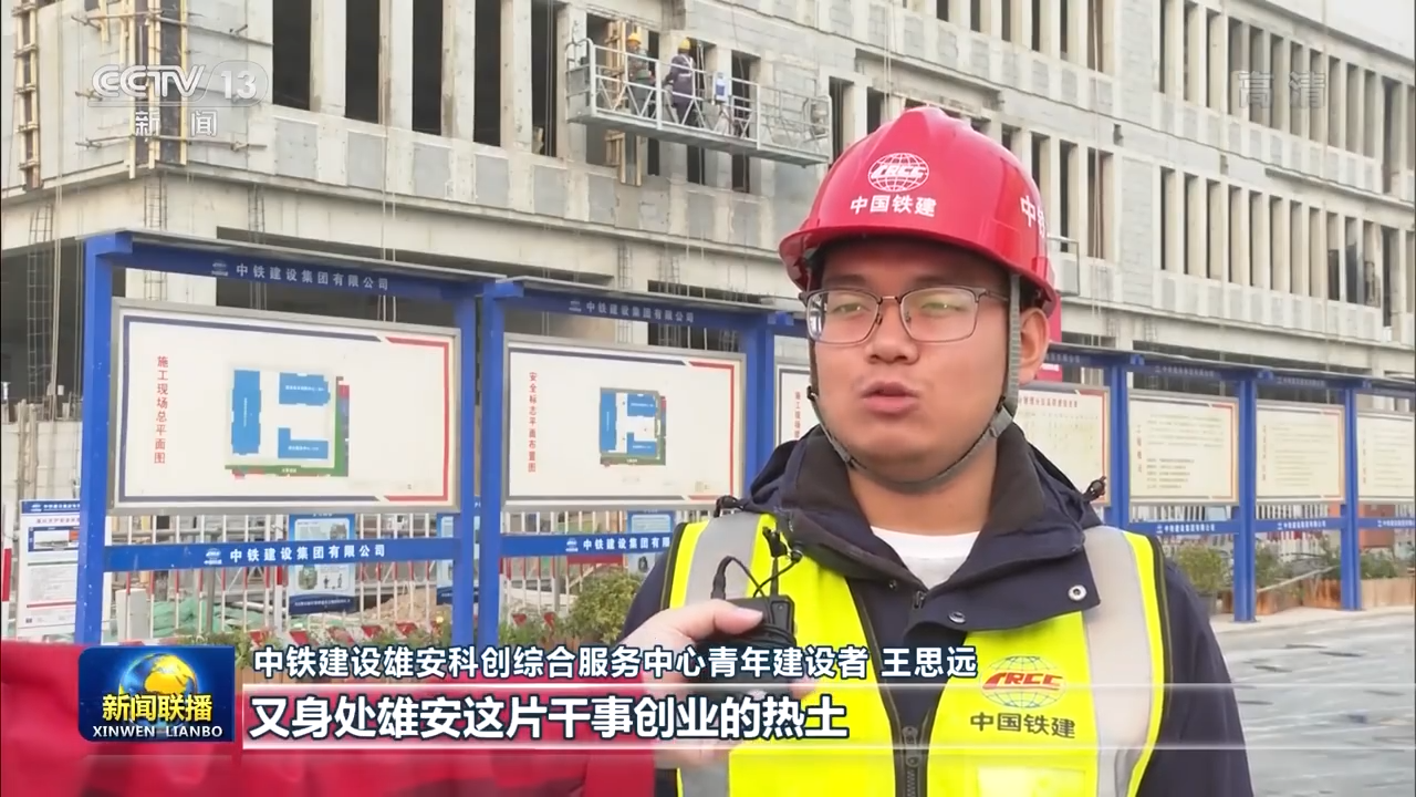 中铁建设雄安科创综合服务中心青年建设者 王思远:作为青年建设者,又身处雄安这片干事创业的热土,我们要发扬工匠精神和创新精神,以时不我待的紧迫感和责任感,为高标准高质量建设雄安新区增砖添瓦,让青春在祖国和人民最需要的地方绽放光彩。