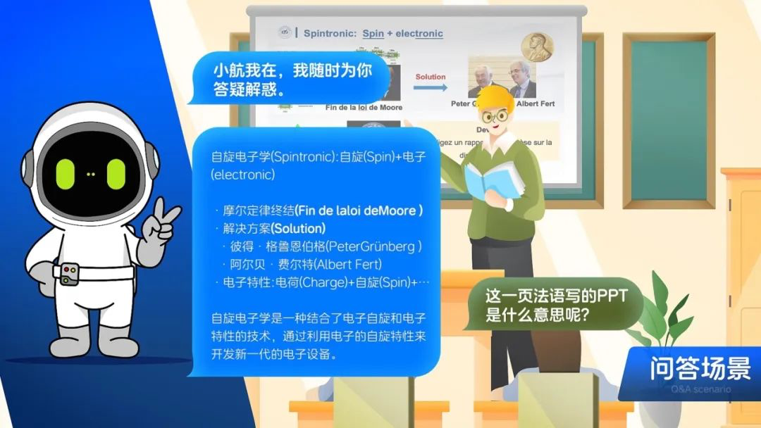 “我在做自旋领域的研究,请帮我找下相关科研论文”“这一页法语写的PPT是什么意思”“我把校园卡弄丢了怎么办”……这些师生常见的问题,问问“小航”就能获取解决方案。