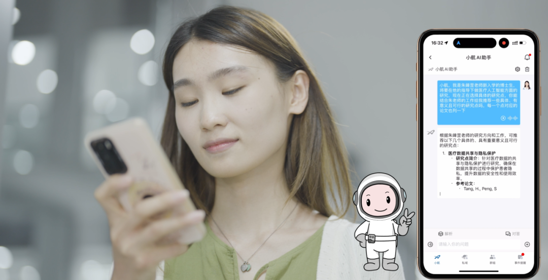 近日,北京航空航天大学发布了一款集学、研、管于一体的大模型“小航”AI助手,可以为师生、课程组、课题组以及部门院系等提供个性化、生成式的智能服务。目前,“小航”团队正在做最终测试,预计新学期将面向师生开放使用。