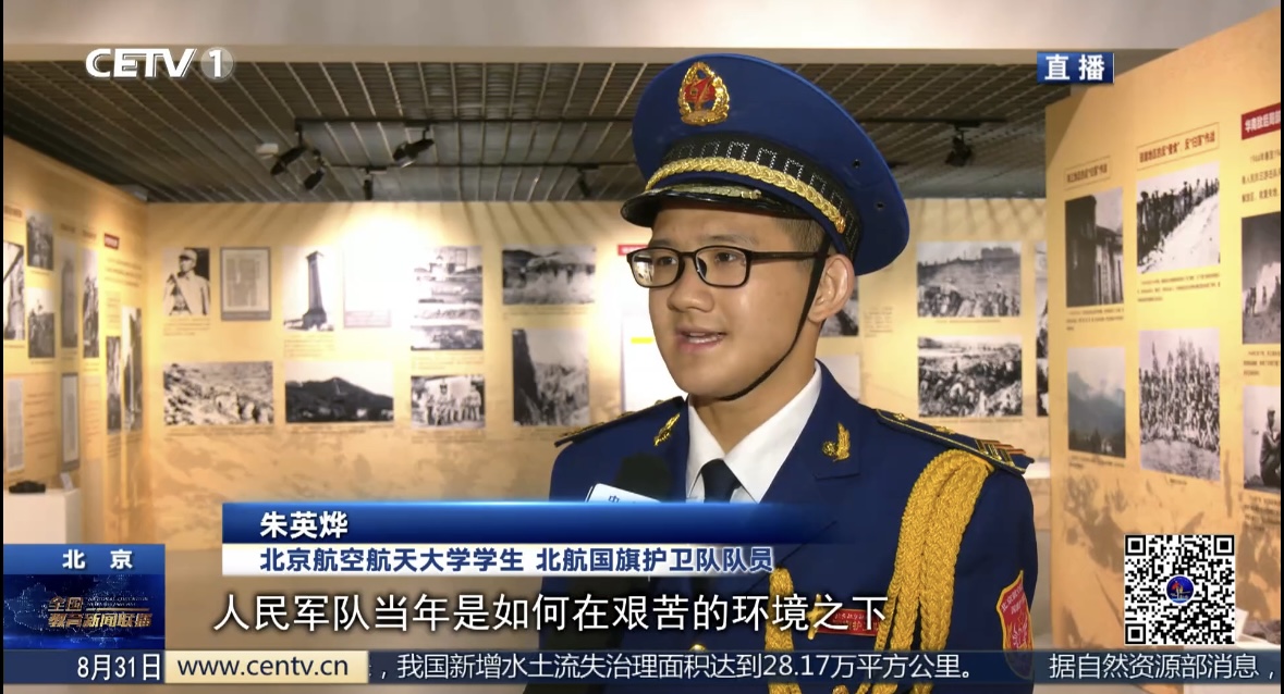 【同期】北京航空航天大学学生工作部专职学工干部 何其超:在新生第一课、新生军训,我们都融入了参观这个展览,我们希望在新生入学教育的阶段,给同学们浸润式地开展纪念抗战胜利80周年这样一个活动的这样一个精神的学习。