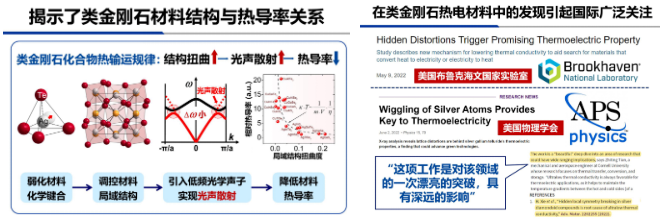 谢鸿耀深入探索新能源热电半导体的研究开发,首次发现类金刚石化合物的原子偏中心效应与其晶格热导率的相互联系,并提出利用晶体结构扭曲度来预测类金刚石材料热导率的新方法,结合该发现开发了一系列新型类金刚石热电能源材料,所开发的材料性能达到先进水平。该研究成果被美国物理学会、美国布鲁克海文(Brookhaven)国家实验室在内的众多学术机构专题报道。基于该系列研究成果获得国际热电学会优秀博士后研究者奖,该奖项全球每年仅授予1人。