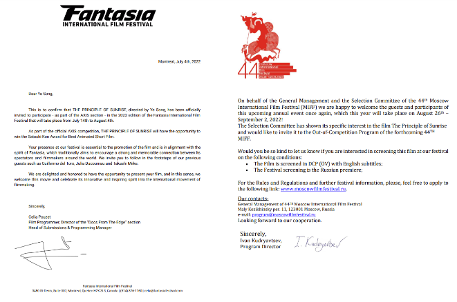 宋晔的作品入围加拿大奇幻电影节和莫斯科国际电影节