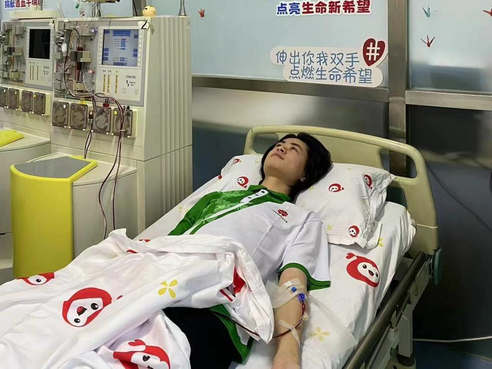 2023年12月29日,在中国人民解放军总医院第五医学中心,曾子函安静地躺在床上,血液从左臂被缓缓采集出来,进行体外循环,经过血细胞分离机后,从右臂输血管输回体内,而被分离出的造血干细胞,将给另一个生命带去新的希望。