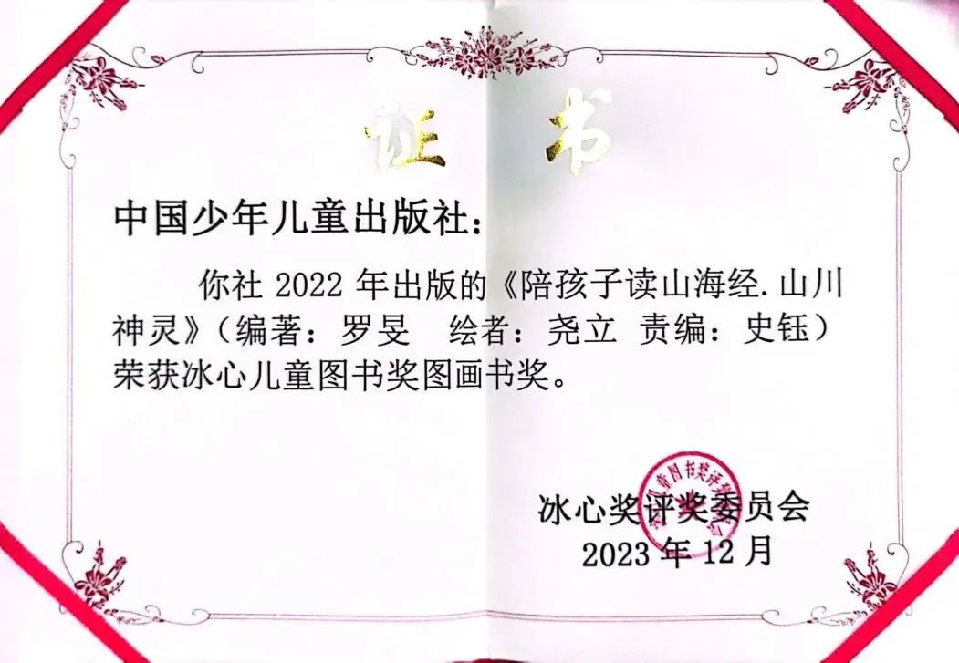 罗旻出版的《陪孩子读山海经·山川神灵》荣获2023年“冰心儿童图书奖”。冰心奖创立于1990年,以严格、公正和权威著称的"冰心奖",自1990年设立以来,每年举行一次颁奖大会,在海内外产生了广泛而深远的影响,是国内四大儿童文学奖之一。