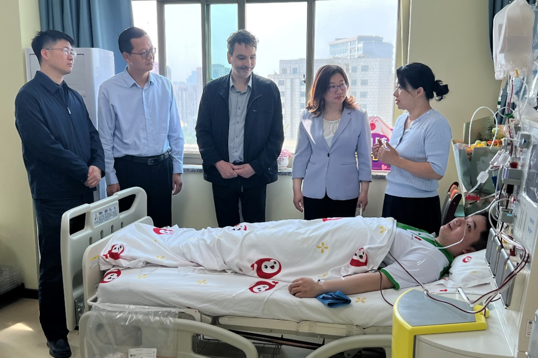 对大多数白血病患者来说,接受造血干细胞移植是重获新生的关键,而对于非血缘关系人群来说,成功配对的几率仅有十万分之一。在这难得的幸运背后,是无数人的善意与关爱在汇聚。学校、学院领导,北京市区两级红会捐献中心、空军总医院领导来到采集室看望梁正并为他加油鼓劲。北京市红十字会捐献服务中心与海淀区红十字会为梁正颁发捐献纪念牌。