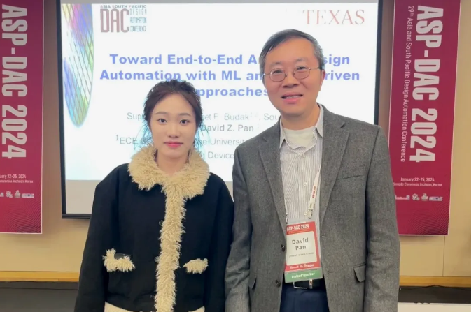 刘艳芳与IEEE Fellow、EDA著名专家,美国UT Austin电子及计算机工程系终身教授Prof. David Z. Pan合影