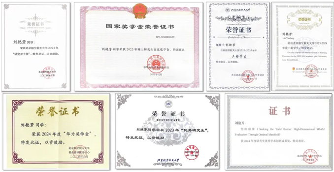 怀揣着芯片报国的志向,刘艳芳来到北航,在集成电路科学与工程学院攻读研究生,她致力于探索AI技术在芯片可靠性设计中的应用。在导师的带领下,两年时间内,在良率提升方面取得6项创新性研究成果,所有研究工作均已通过多个真实设计电路验证,在准确率、效率等指标均超越当前多种先进方法的估计性能。