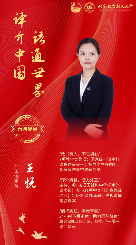 在北航,有这样一位青年教师,她以俄语为媒,搭建“俄语+航天+文化”的传播体系,为俄语世界打开一扇读懂中国航天的窗;她多次亮相央视俄语频道,用专业而亲切的解读,向世界讲述中国航天的壮阔征程;她坚守立德树人的讲台,在典籍外译与人才培养中默默织就中外文化交流的纽带。她是北航外国语学院副教授王悦。